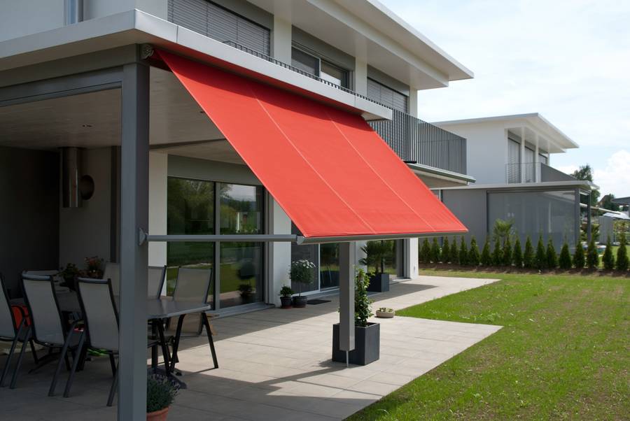 Der Markenhersteller Klaiber aus dem badischen Forst bietet unterschiedliche Fassadenmarkisen wie beispielsweise Senkrecht- oder Ausstellmarkisen an. Senkrechtmarkisen, die wie die Ventosol mit ZIP-System (Reißverschlusstechnik) ausgestattet sind, eignen sich auch als Verdunkelung und Insektenschutz. Kasten und Führungsschienen sind farblich einheitlich und können zusammen mit der gewünschten Tuchfarbe optimal an das Erscheinungsbild des Hauses angepasst werden. Gerade bei Häusern mit vielen Fenstern sind Fassadenmarkisen ein besonderes optisches Highlight.