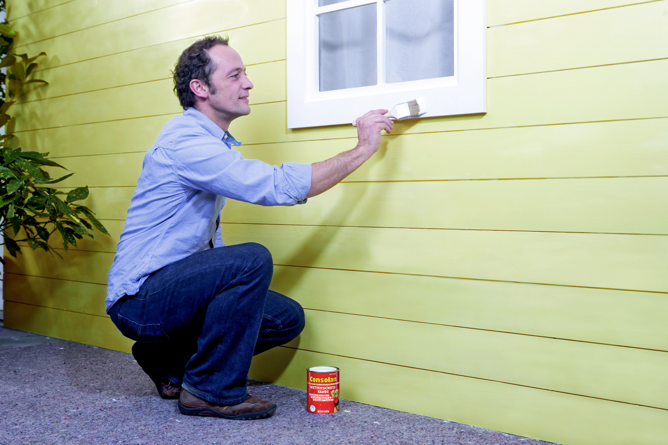 Damit auch das Gartenhaus den Winter ohne Feuchtigkeitsschäden übersteht, sollte es mit einem Holzschutzmittel, beispielsweise einer Lasur, gestrichen werden. Dabei sollte immer in Richtung der Holzmaserung gearbeitet werden. Bild: tdx/Xyladecor